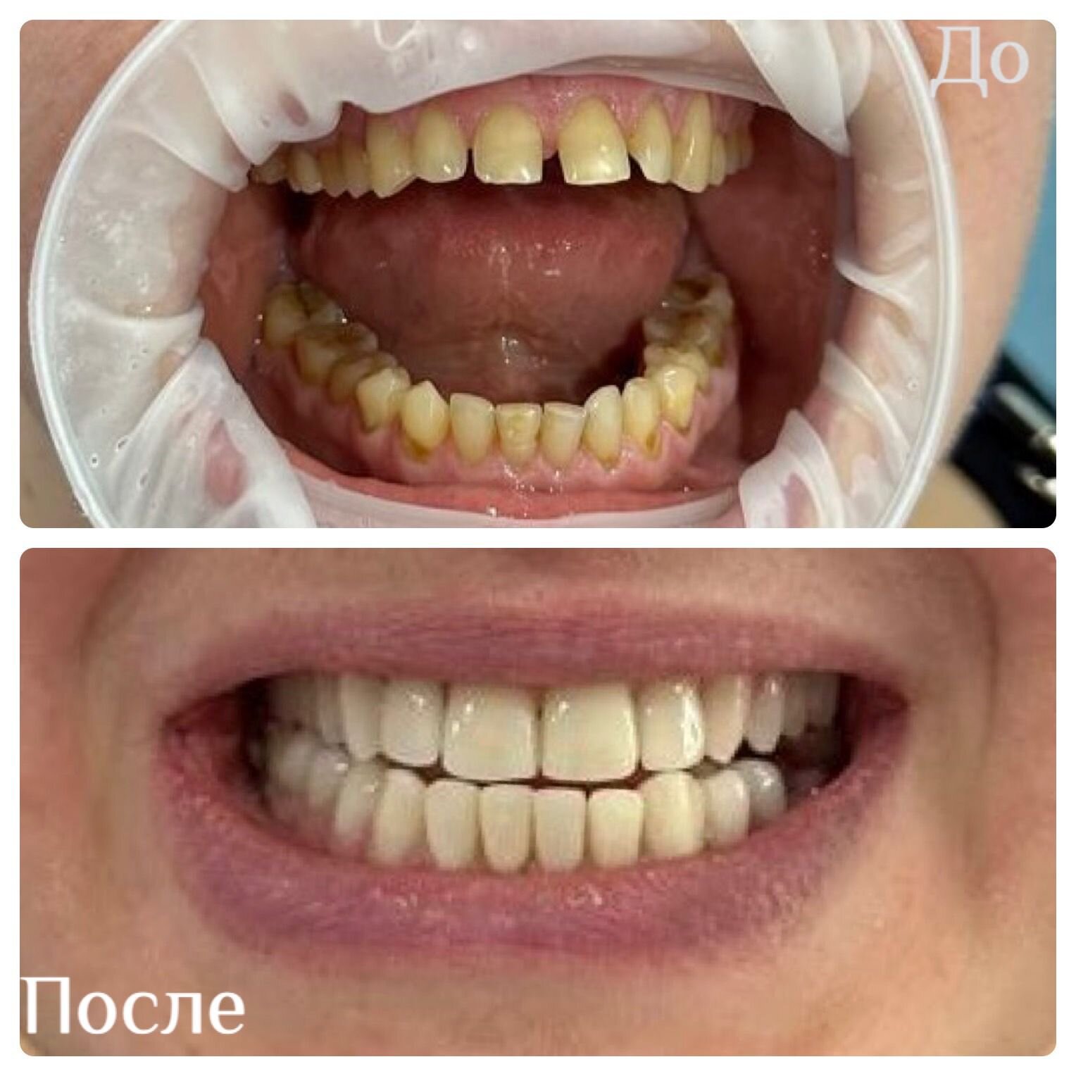 Работа выполнена аккуратно, безболезненно и быстро (минут 40-50 всего и я снова могу уверенно улыбаться)))